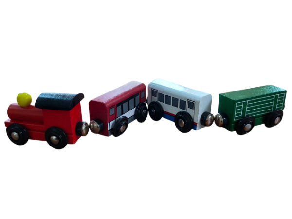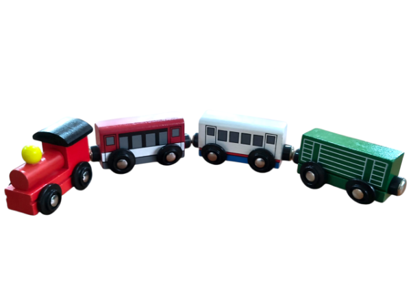 Tren con imán, locomotora y tres vagones.